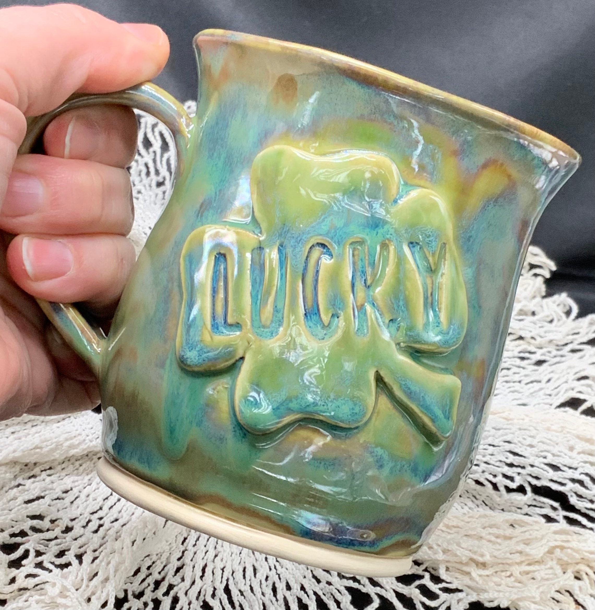Green Iridescent Lucky Clover Hand Thrown Pottery Mug 13 Etsy